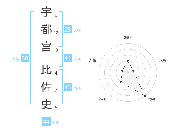 宇都宮 比佐史さんの総格は44画の2点