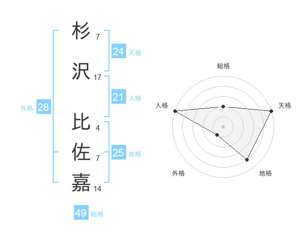 杉沢 比佐嘉さんの天格は24画の5点!
