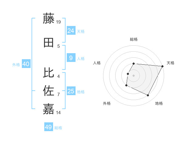 藤田 比佐嘉さんを姓名の画数から五運を鑑定