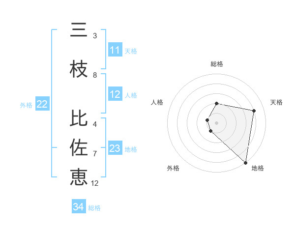 三枝 比佐恵さんを姓名の画数から五運を鑑定