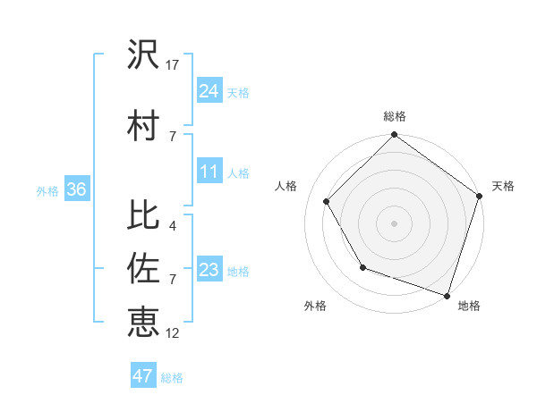 沢村 比佐恵さんを姓名の画数から五運を鑑定