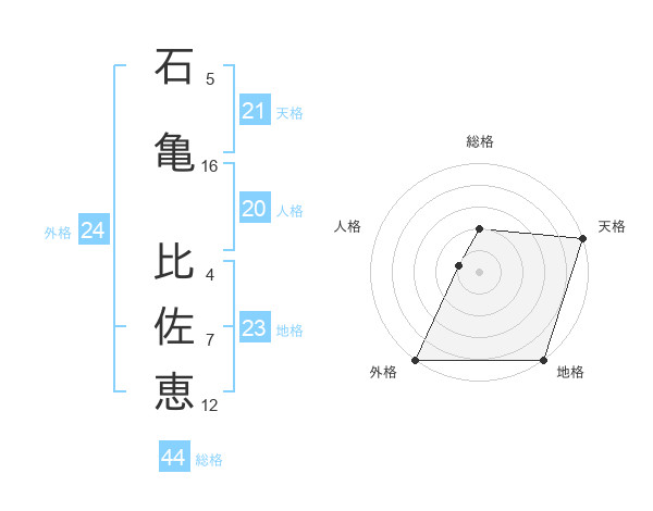 石亀 比佐恵さんを姓名の画数から五運を鑑定
