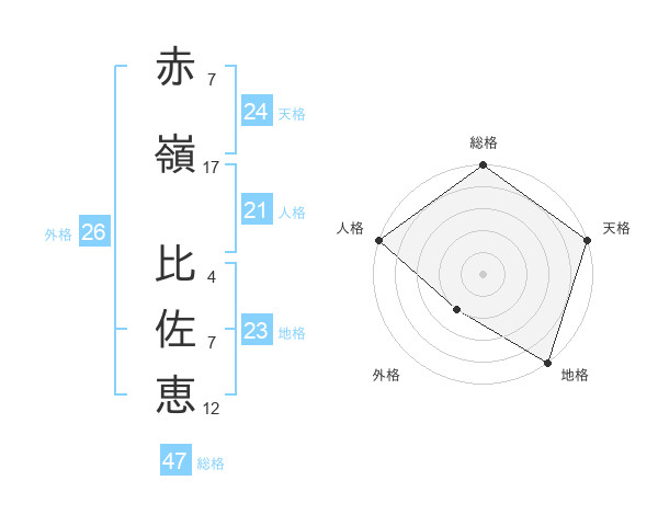 赤嶺 比佐恵さんの総格は47画の5点!