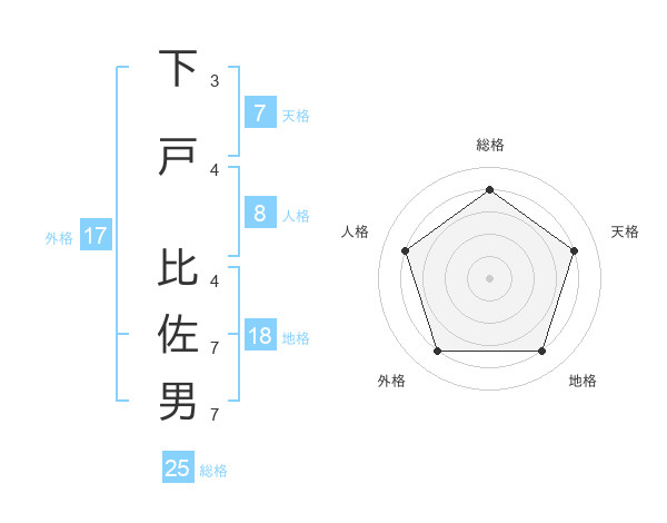 下戸 比佐男さんを姓名の画数から五運を鑑定
