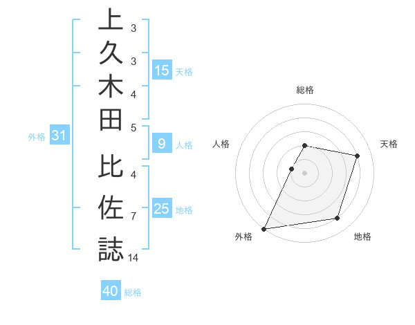 上久木田 比佐誌さんを姓名の画数から五運を鑑定