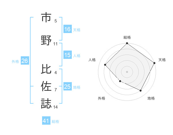 市野 比佐誌さんを姓名の画数から五運を鑑定