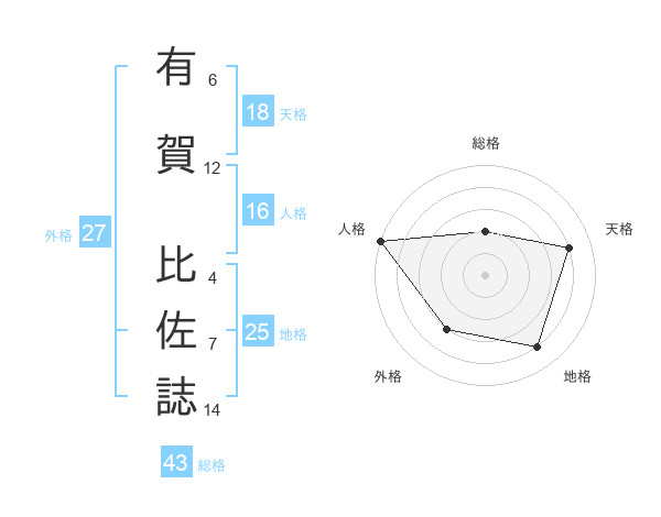 有賀 比佐誌さんの地格は25画の4点!