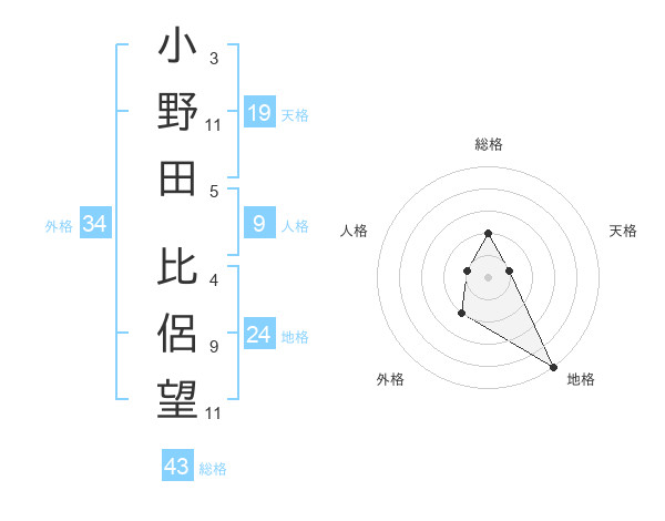 小野田 比侶望さんを姓名の画数から五運を鑑定