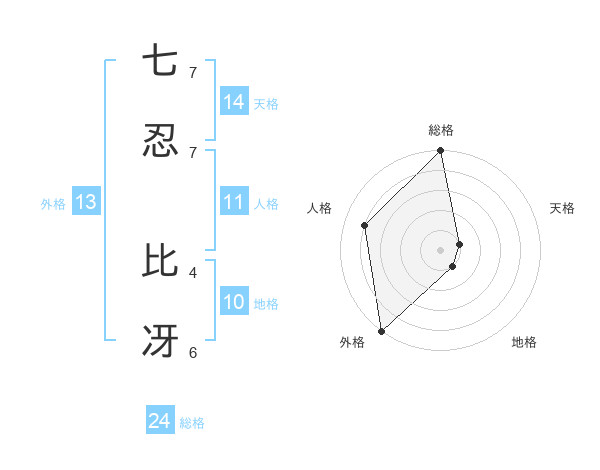 七忍 比冴さんの外格は13画の5点!