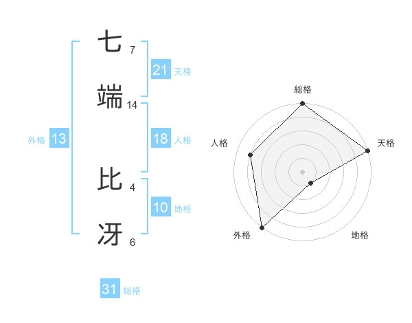 七端 比冴さんの天格は21画の5点!