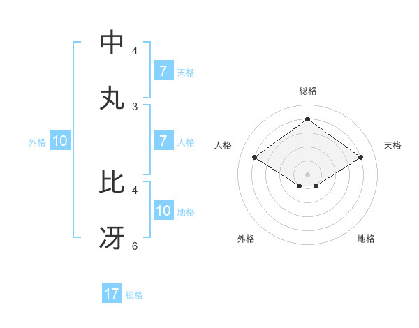中丸 比冴さんを姓名の画数から五運を鑑定