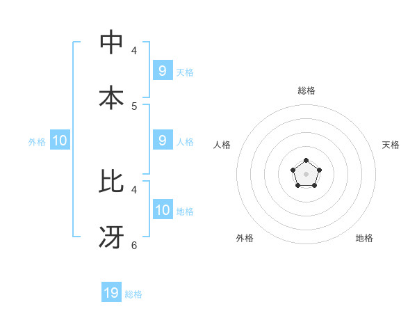中本 比冴さんを姓名の画数から五運を鑑定