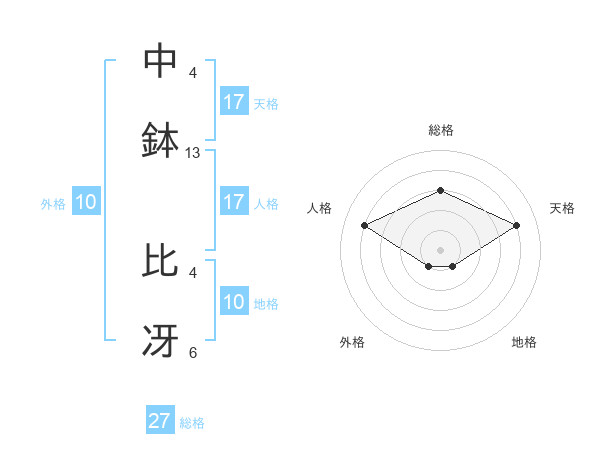 中鉢 比冴さんを姓名の画数から五運を鑑定