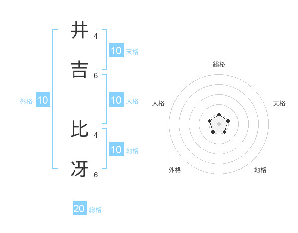 井吉 比冴さんの総格は20画の1点!