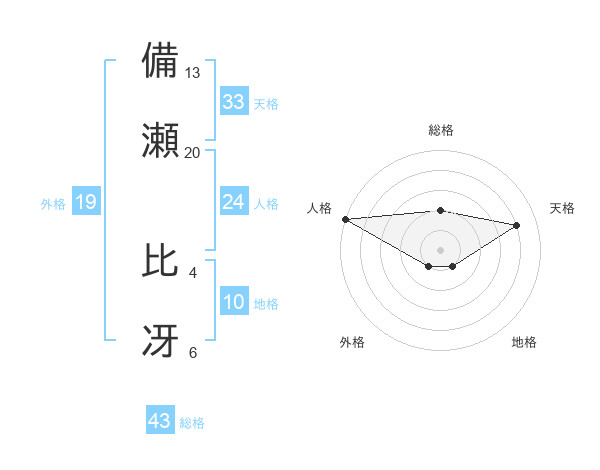 備瀬 比冴さんを姓名の画数から五運を鑑定