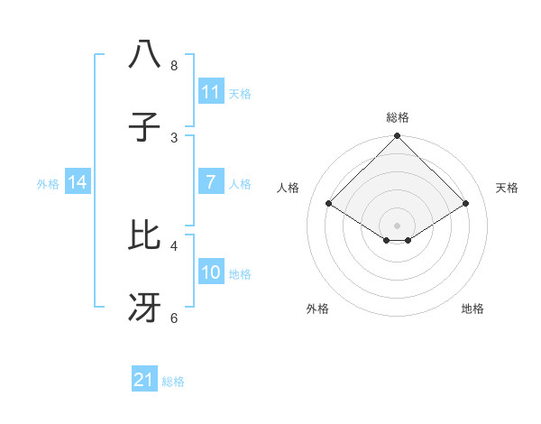 八子 比冴さんの天格は11画の4点!