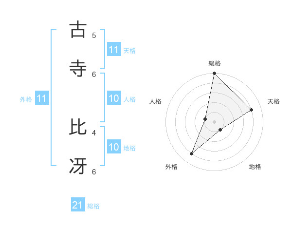 古寺 比冴さんの総格は21画の5点