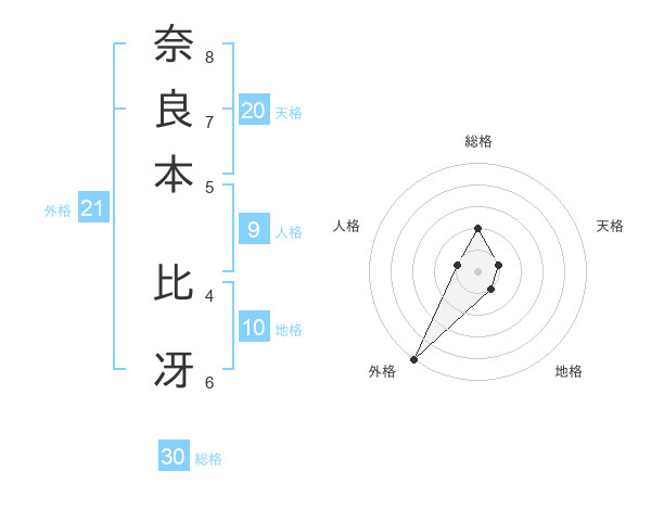 奈良本 比冴さんの外格は21画の5点!