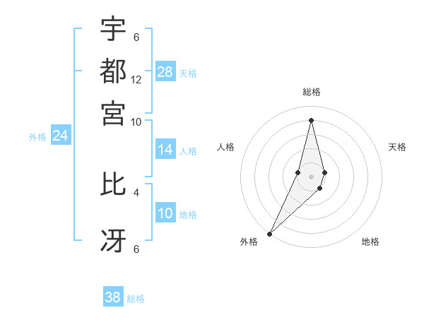 宇都宮 比冴さんを姓名の画数から五運を鑑定