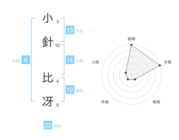 小針 比冴さんの総格は23画の5点!