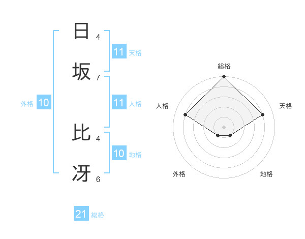 日坂 比冴さんの総格は21画の5点!