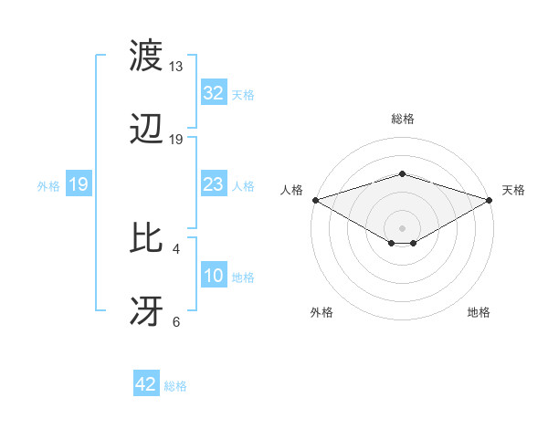 渡辺 比冴さんを姓名の画数から五運を鑑定