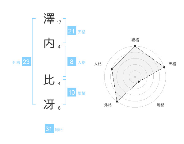 澤内 比冴さんを姓名の画数から五運を鑑定