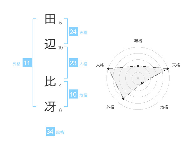 田辺 比冴さんの天格は24画の5点!