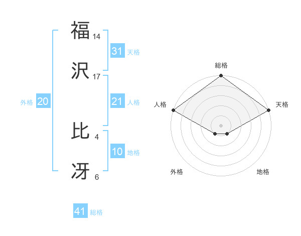福沢 比冴さんを姓名の画数から五運を鑑定