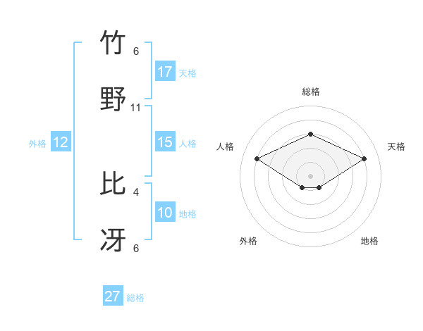 竹野 比冴さんを姓名の画数から五運を鑑定