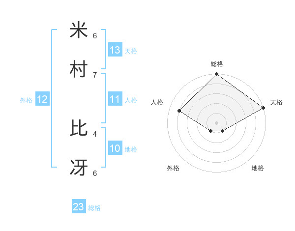 米村 比冴さんの天格は13画の5点!