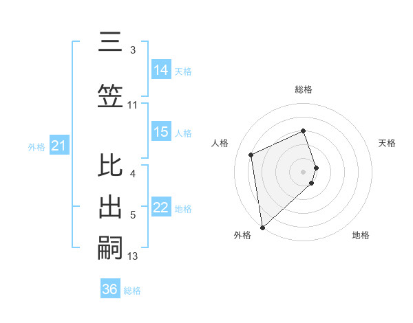 三笠 比出嗣さんを姓名の画数から五運を鑑定