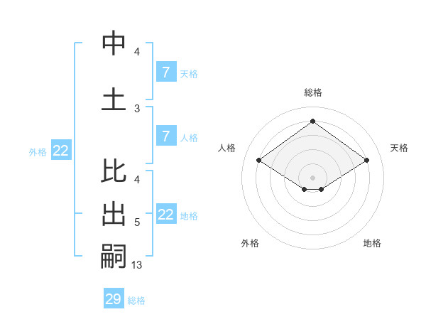 中土 比出嗣さんを姓名の画数から五運を鑑定