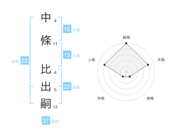 中條 比出嗣さんの地格は22画の1点!