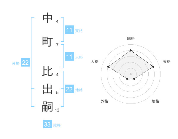 中町 比出嗣さんの総格は33画の4点!