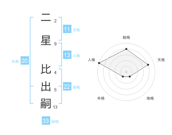 二星 比出嗣さんを姓名の画数から五運を鑑定