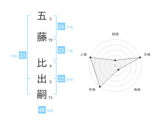 五藤 比出嗣さんの外格は23画の5点!
