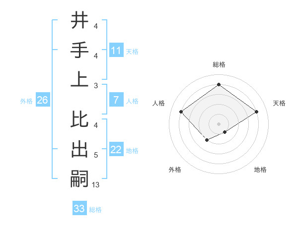 井手上 比出嗣さんの総格は33画の4点!