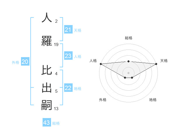 人羅 比出嗣さんを姓名の画数から五運を鑑定