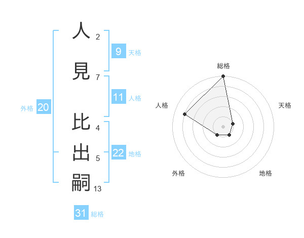 人見 比出嗣さんの総格は31画の5点!