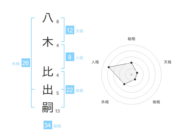 八木 比出嗣さんを姓名の画数から五運を鑑定
