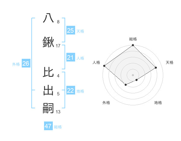 八鍬 比出嗣さんを姓名の画数から五運を鑑定