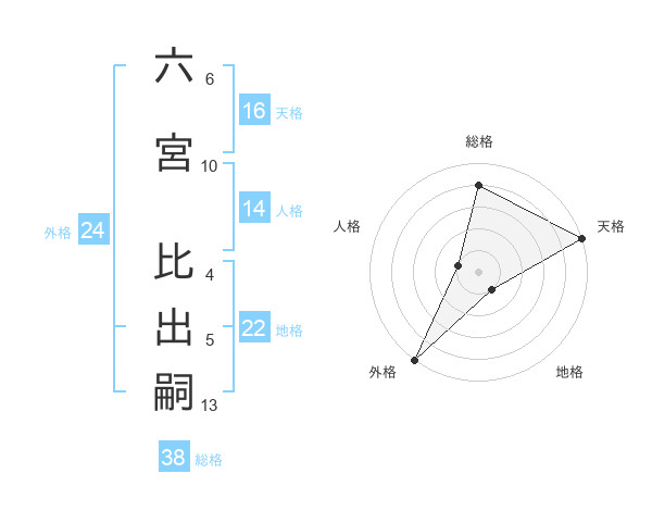六宮 比出嗣さんの外格は24画の5点!