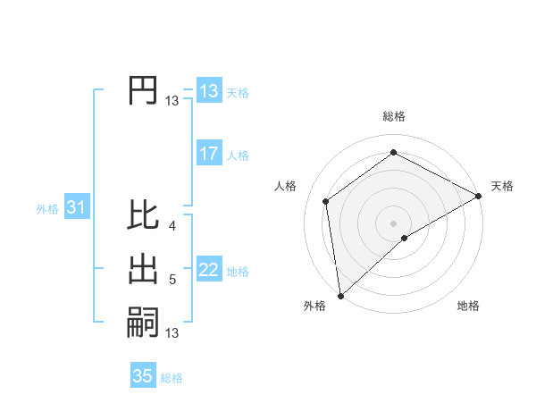 円 比出嗣さんを姓名の画数から五運を鑑定