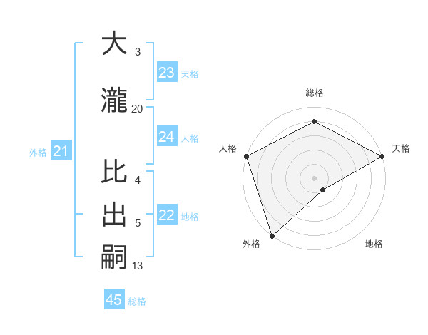 大瀧 比出嗣さんを姓名の画数から五運を鑑定