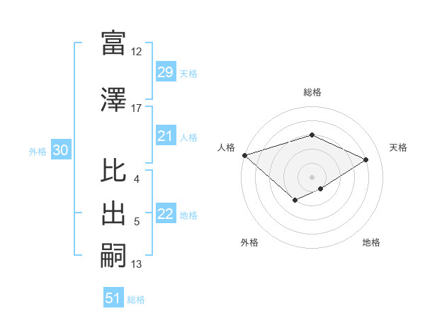 富澤 比出嗣さんを姓名の画数から五運を鑑定