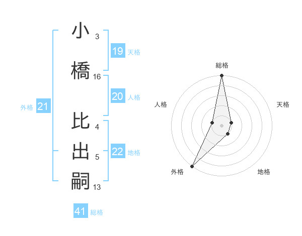 小橋 比出嗣さんを姓名の画数から五運を鑑定