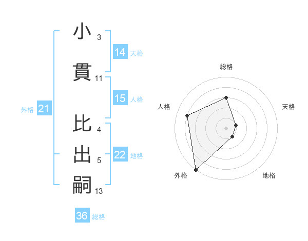 小貫 比出嗣さんを姓名の画数から五運を鑑定