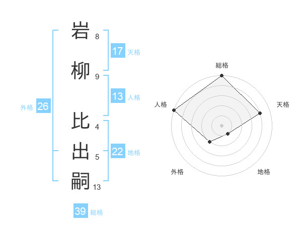 岩柳 比出嗣さんの総格は39画の5点!