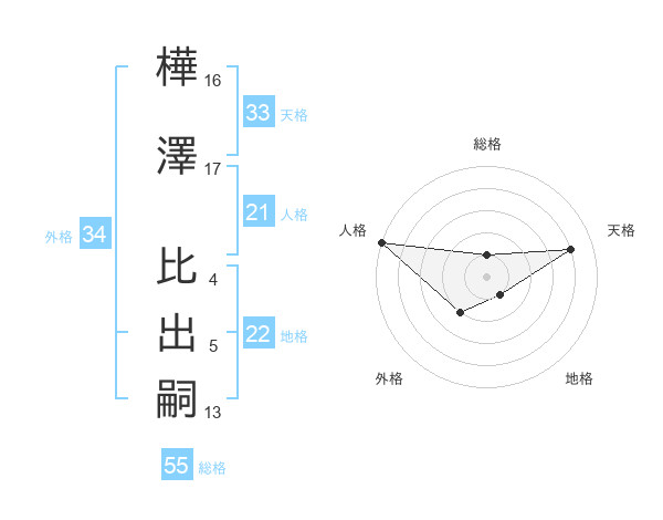 樺澤 比出嗣さんの総格は55画の1点!